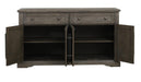 - 2 cabinets with 4 wood doors, each with 1 adjustable shelf