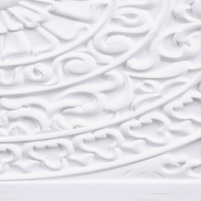 Put the last touches on a stylish space with the added storage and impeccable style of a modern accent cabinet. Featuring two decorative magnetic push-to-open doors, it's the perfect addition in any space, offering ample interior space with an adjustable shelf. The top creates space for decor or to highlight beautiful artwork hung above. The cabinet boasts a crisp white finish, bringing light, refined character to a pair of floral medallion doors. Curvy legs features silver-toned caps, adding a hint of contrast and dimensionality in any room.