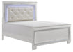 - Tufted button Bi-cast Vinyl (faux leather) upholstered headboard with LED lighting and beveled mirror frame