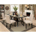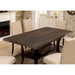 Kaitlin Light Walnut Dining Table, 70"W X 38"D X 30"H, 107.3lbs. Stunning nailhead accents bring extra appeal to this transitional dining set, creating the perfect setting for a warm and inviting meal. The spacious tabletop ensures there ample space to lay out place settings while the lower shelf offers room for d isplay and storage. The linen upholstery of the chairs offers added comfort to the design to provide extra enjoyment to the experience. With its long curved legs and detailed wood grain, this table works in tandem with the chairs to easily fit for yo ur transitional dining space. Features: Transitional Style Melamine Coated Top Open Lower Shelf Padded Fabric Chairs Nailhead Trim Solid Wood, Wood Veneer, Others Light Walnut Finish