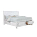 Castor White Cal.King Bed, 98 1/2"L X 80 3/4"W X 57 1/4"H, 237.6lbs. This bedroom set offers a touch of rustic flair with a contemporary twist to redefine your personal space. Perfect for amping up the elegance of any bedroom, the exquisite features of the solid wood and wood veneer framework is available in 3 differe nt finishes that can easily accommodate any particular style. The platform bed comes with two drawers in the footboard for maximum storage space while the felt-lined top drawers and English dovetail construction provides a traditional touch to blend with any setting. Features: Transitional Style 2 Drawers in Footboard Hidden Drawer in Nightstand Felt-lined Top Drawers English Dovetail Drawer Construction Solid Wood, Wood Veneer, Others