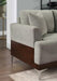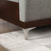 Sleek and contemporary, this seating group features mixed materials and a two-tone design that's sure to catch one's eye. Gray chenille covers the top half, the lower half features a wood veneer in walnut finish, its frame help up by steel legs polished in chrome. The contrast between the light and dark parts provides visual interest that could easily elevate the state of your home decor.