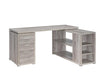 This alluring L-shaped office desk offers the stylish workspace needed to hit any deadline. It features open shelves and three drawers as well as a built-in filing cabinet. It's expertly crafted with particle board, MDF, and engineered veneer that's provides reliability and durability. The L-shaped desk top accommodates widescreen monitors and a lamp as well as a set of dictionaries and research books. It also has a reversible set-up to conveniently match whatever office design you have. Includes: One (1) L-shape desk