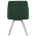 Nestled amidst the verdant embrace of potted palms, the Art Deco-inspired dining table is a modern masterpiece, its cylindrical form enshrouded by gleaming metal rods that whisper tales of Gatsby-esque opulence. A clear, tempered glass top, expansive at 60 inches, floats like a crystalline pond above the polished chrome base, inviting an array of tablescapes to dance upon its surface. Surrounding this sculptural piece, four sumptuous green velvet chairs beckon, their channel tufted backs and swiveling seats echoing the luxury of a bygone era, yet firmly rooted in contemporary comfort. The table and chairs, a marriage of retro flair and modern lines, stand as a stunning focal point, inviting guests to linger over shared meals and conversations that sparkle as brightly as the chrome finishes that bind them.