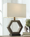 Who knew geometry could be so stylish? This table lamp's hexagonal base sports a stunning gray washed finish over faux wood. Its angular silhouette brightens up your space with the right amount of style and light.