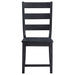 Embrace a timeless look in your kitchen or dining room with rustic beauty and a bold finish. This set of two black dining side chairs strikes a superb balance between farmhouse modern and low-key traditional motifs, providing comfortable seating in the process. Asian hardwood and wood products construct a chair with a tall ladder-back design, curved just slightly and offering a look and feel of solid workmanship. A bold black finish calls out refined details, including a scoop element on straight seats, turned accents on its front legs and gentle tapering on back legs. Make this chair set part of your everyday living, enjoying both sentimental farmhouse charm and a dynamic style statement.