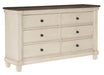 Weaver Collection by Homelegance Furniture Two Tone finish Antique white and Rosy brown color Made of acacia veneer and wood 6 dovetailed drawe...