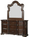 View full detailsRoyal Highlands Collection by Homelegance Furniture Rich Cherry finish Cherry and birch veneers Carved scrolling accents Arched frame Beveled glass