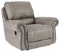 Seamlessly merging classic elements with modern trends, this recliner invites you to bring home the best of then and now. Wrapped in a fabulous steel gray upholstery with sumptuous suede-like feel, this easy-elegant reclining chair is dressed to impress with updated roll arm styling and tailored touches including nailhead trim and window pane stitching.