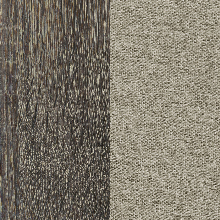 Introduce refined style in an approachable bedroom ensemble with this transitional wooden bed. With an upholstered headboard, it delivers impeccable comfort for lounging and relaxation. A brown oak wood grain finish pairs with laminate, delivering the perfect blend of style and durability. Tan fabric pairs with foam cushioning, delivering a complementary color tone that remains neutral in your bedroom. The bed features a tall headboard paired with a low footboard, creating an open, airy profile.